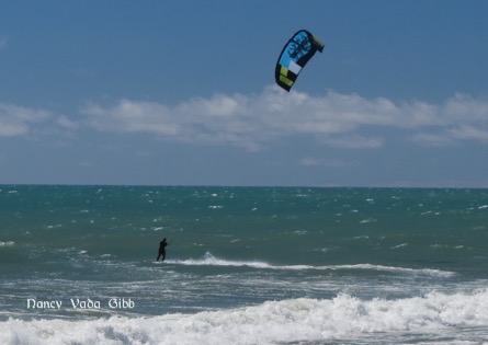 It was too windy for us to hire a sort of phaeton-cum-bicycle to pedal gracefully along the Coastal Walkway while admiring the views, so we drove to various points instead. At East End beach a couple of windsurfers were making full use of the wind and waves.
