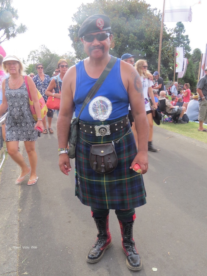 I told this guy I liked his kilt and got a hug in return. The T-shirt says “Touch not the cat but a glove” (should really be … bot a glove). The motto of the MacPhersons and Mackintoshes. I guess he really was one.