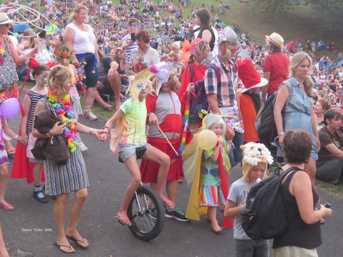The Peacock Ladies awed me not only with their gorgeous costumes but by walking down the steep hill on stilts during the final Parade, accompanied by children dressed in their own creations and playing home-made drums.
