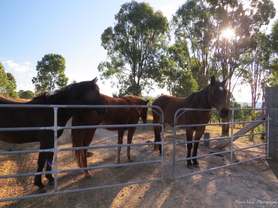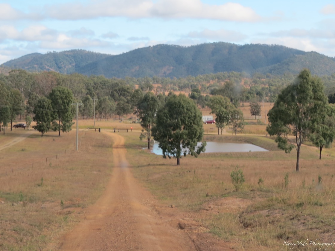 Our arrival in Queensland coincided with a bout of cool weather (of course we were blamed for bringing it over from NZ) and instead of T-shirts I found myself wearing light jumpers, even indoors. I was grateful for the wonderful wood burner which Nic and Mick have installed since our last visit, and enjoyed going out into the paddocks to collect more of their unlimited supply of timber. It was good to be back on the property which has had plenty of rain recently. The huge new dam was full, the horses were all looking sleek and well-fed, there were lots of roos around and the 2 dogs Pirate and Rascal were just as lunatic as ever (!).