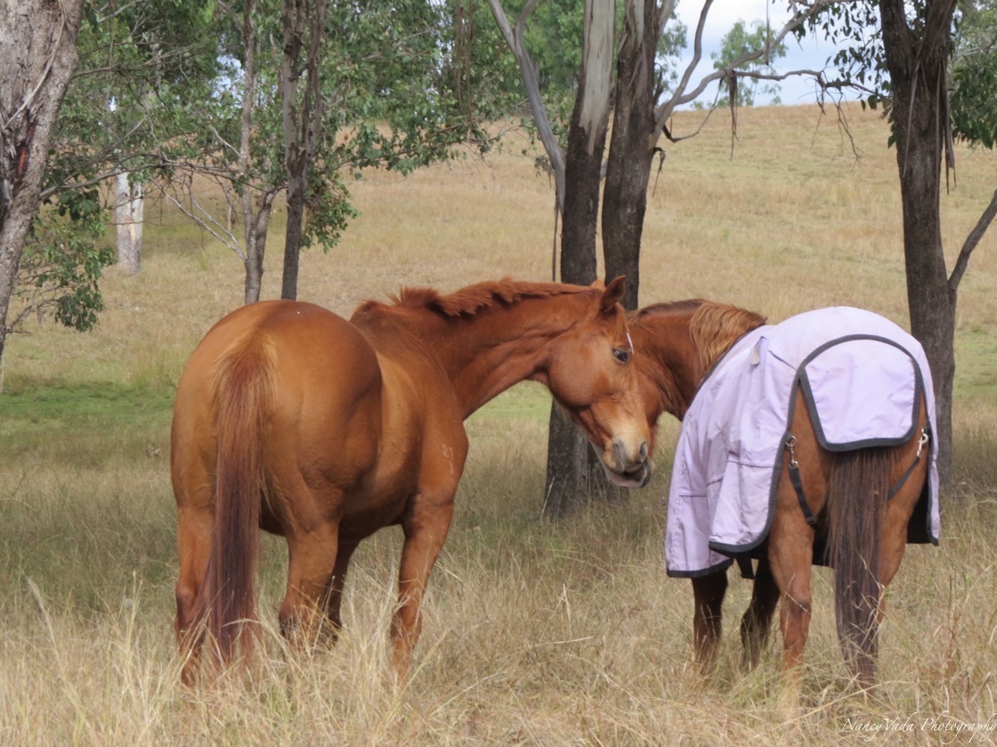 Mick’s Richie was shifted to another paddock and the horses already there rushed over to check out the newcomer. There was immediate recognition between Ritchie and Nic’s retired Buddy.