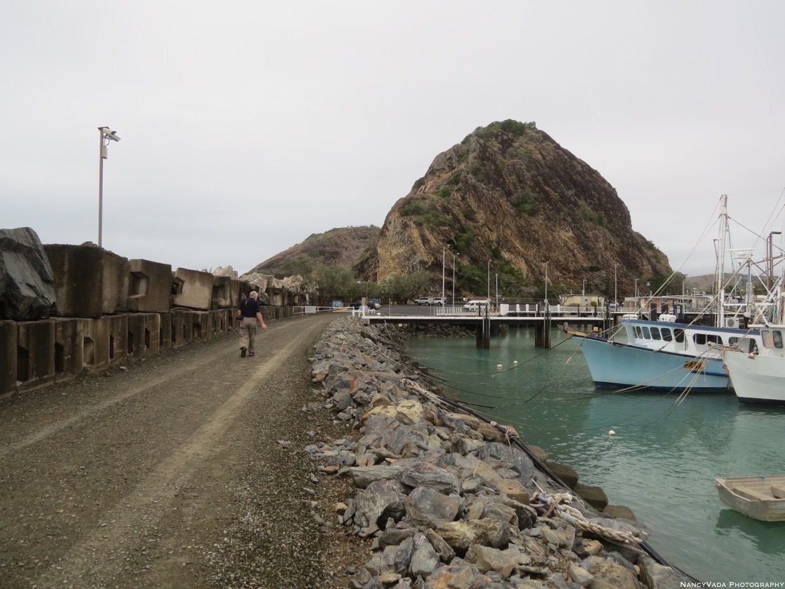 The boat harbour is protected by a huge man-made wall, but during the February cyclone waves broke right over the wall.