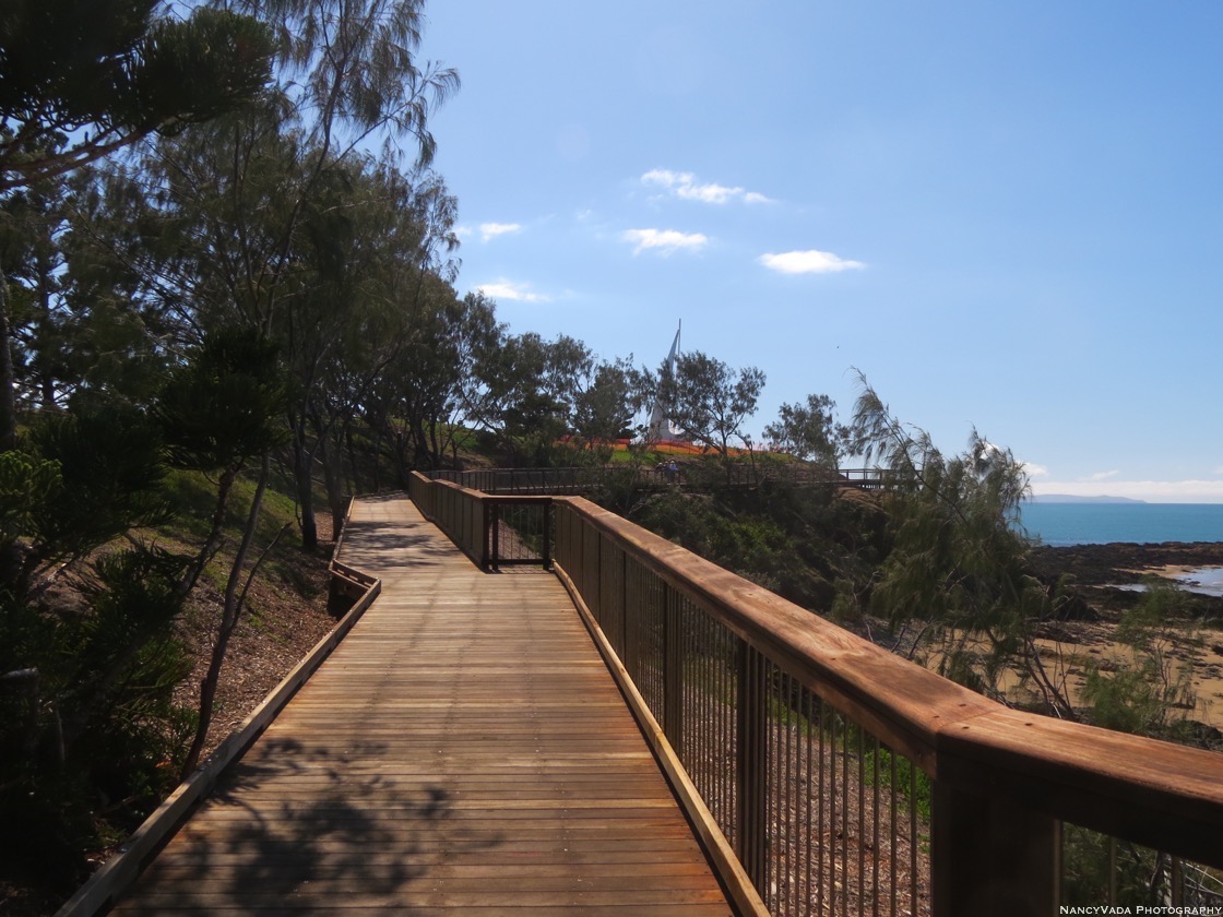 From the Memorial a walkway led around a little beach to an imposing structure in the distance…. a memorial to Captain Cook’s arrival in the Keppels, designed by a woman artist. With a reasonable wind blowing, the structure ‘sings’.