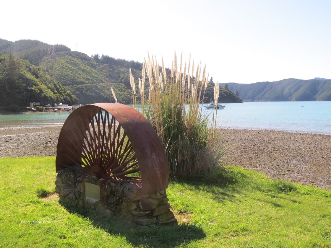 On one last drive before leaving Blenheim we visited the site of the Wairau Affray, just out of Blenheim on the way to Picton. Most people probably miss it. In 1843 there was a confrontation between early settlers and local maori, who objected to their land being surveyed without their permission. According to an official sign, 22 “Nelson men” were buried in a mass grave on the other side of the stream. Intriguingly there is also a small set of graves near the site of the confrontation, obviously tended by local people.