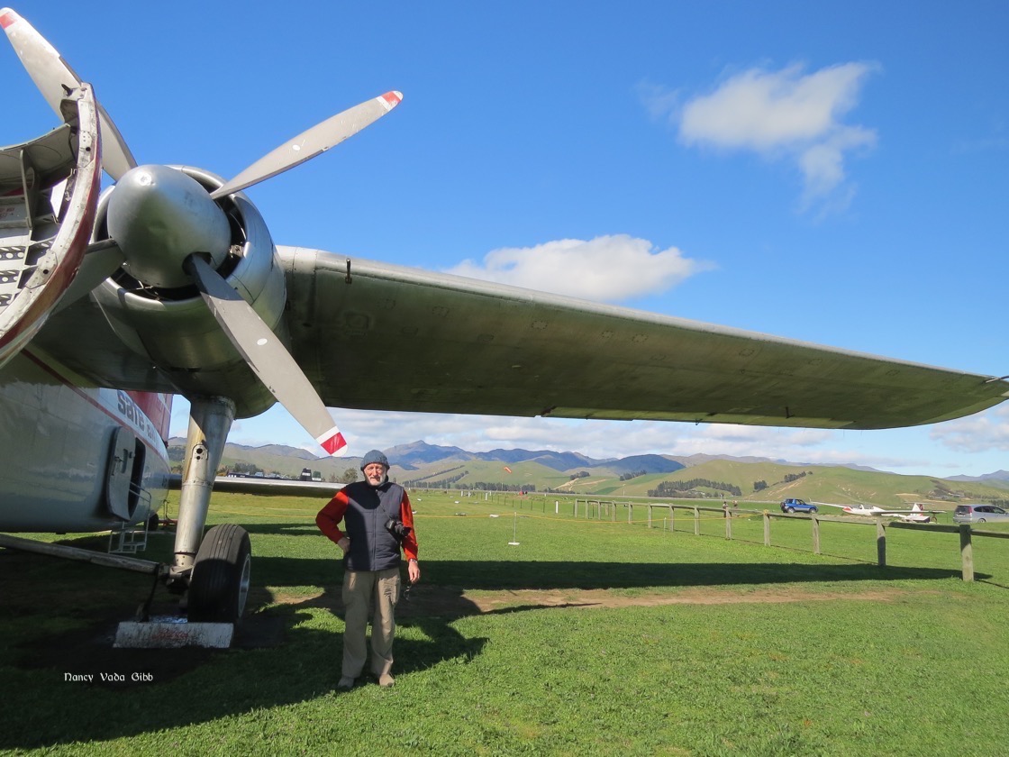 A third local event was a small Vintage Air show at the Omaka (Blenheim) airport. It was on a sunny but bitterly cold and windy day so of course many of the aircraft could not be flown or even brought out from their hangars. When we arrived the parking lot attendant seemed to be waving us straight into the hold of a huge Bristol Freighter – huge indeed at just over 68 ft long with wing span 108 ft. A sign showed that it had spent some 27,700 hours in the air and made over 33,330 landings.
