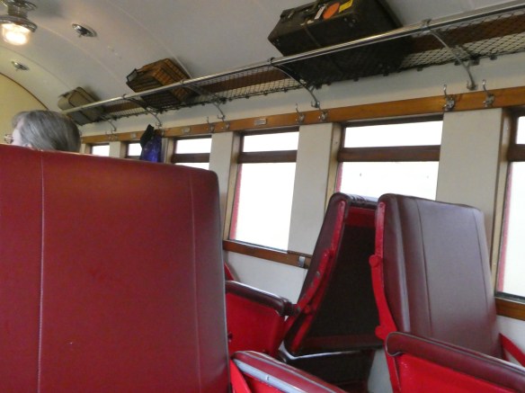 The carriages have been lovingly restored since our last run several years ago. All the seats are now newly upholstered and there are little touches like old suitcases in the overhead luggage racks. Every second window opens, so we were able to get a couple of shots of the vineyards and countryside.