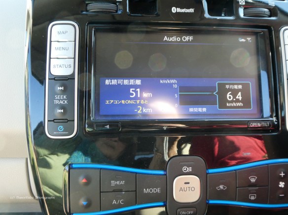 SOC was 89% and the GOM was estimating 140km. (SOC battery State Of Charge and GOM is the Guess O Meter which tries to work out how many Kilometres the battery can take us).
