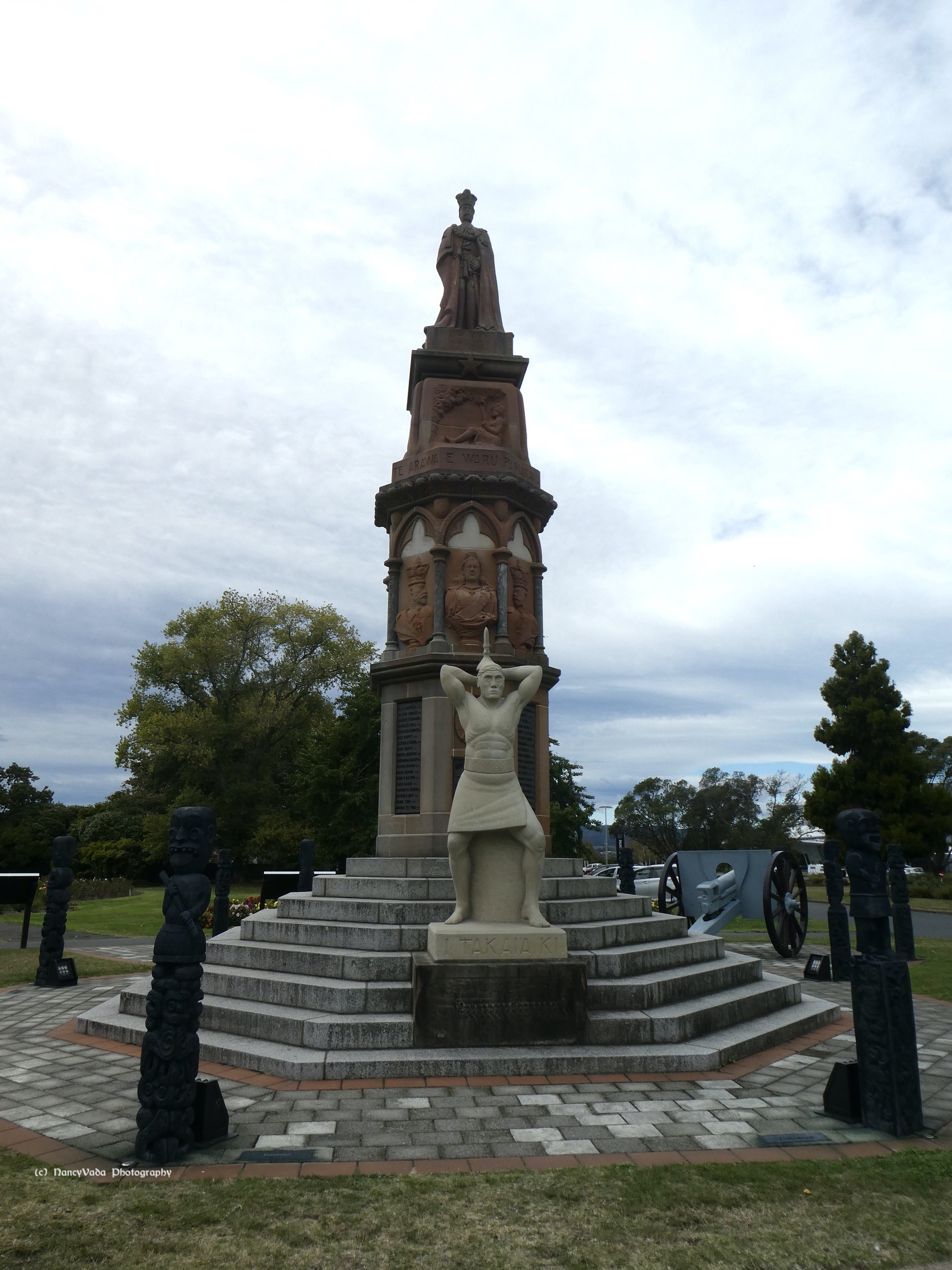 Nearby was a rather unusual statue of Queen Victoria, guarded by a fierce Maori warrior: