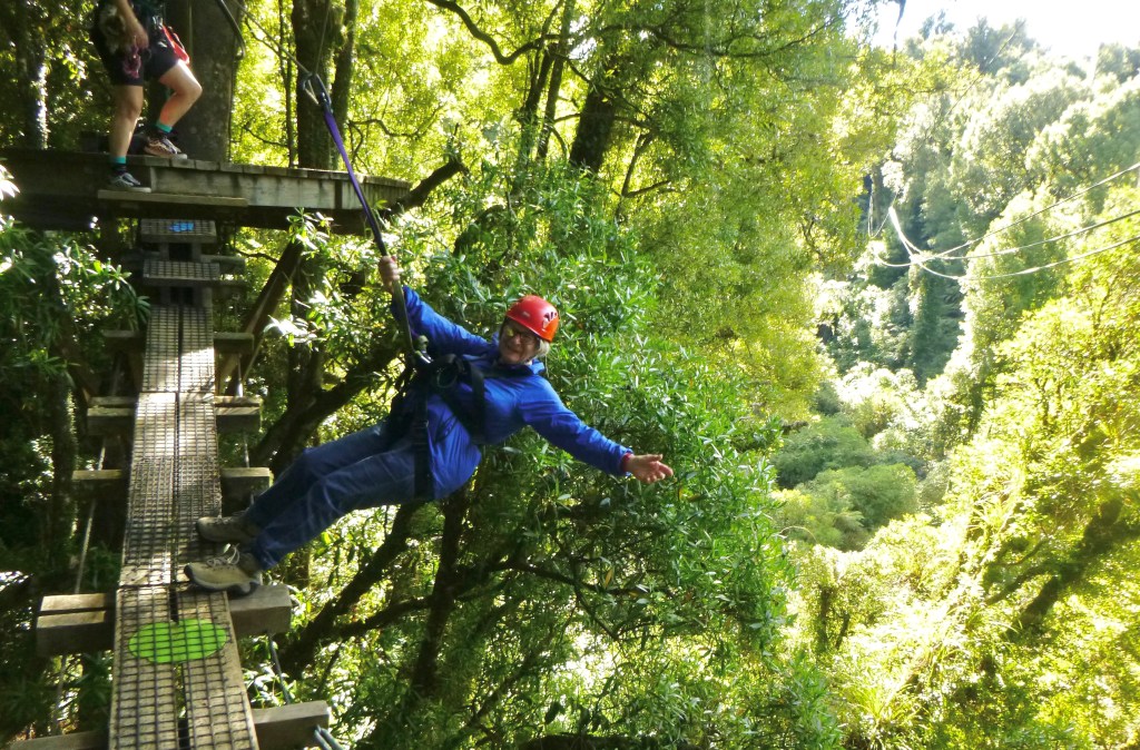 Next morning we drove on to Rotorua and another fun adventure with Rotorua Canopy Tours. <https://www.canopytours.co.nz/experiences/the-original-canopy-tour/ > We did the slightly longer Ultimate Canopy Tour two years ago as an early 80th birthday treat for me – very fortuitous as it turned out, just a month before NZ’s Covid Lockdown.
