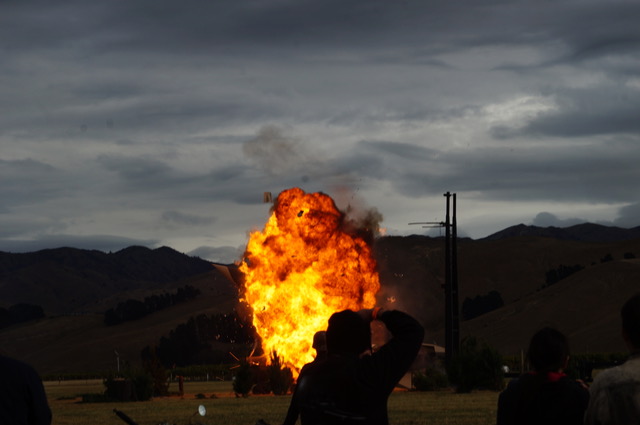 The usual War scenarios were played out with lots of pops and bangs and dramatic ‘deaths’, and ‘officers’ in a variety of uniforms rushed around looking puzzled. Always entertaining! The old warplanes zoomed around overhead and a huge rocket was dramatically demolished (photo by Dave).