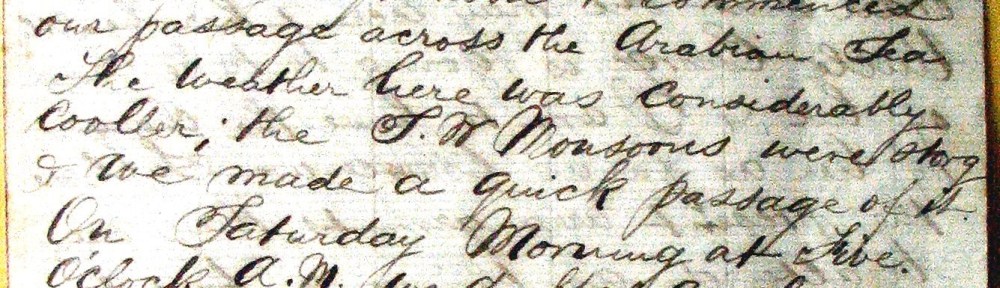 A number of letters which George wrote to his family in Tasmania have survived and show that he spent many years on cargo and passenger boats, both sail and steam, plying between the Far East, UK, the Americas and Australasia. He had a firm clear handwriting and was of a literary turn of mind.