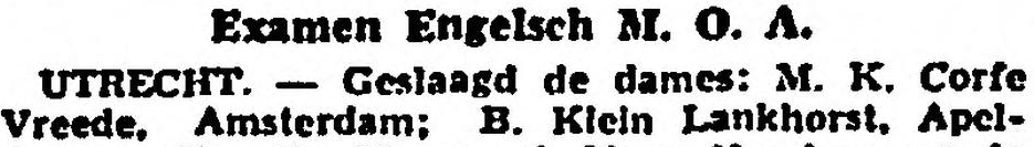 Earlier, while in Amsterdam, Maisie passed a diploma exam for teaching English before a central jury in Utrecht, and may have pursued further studies in England.