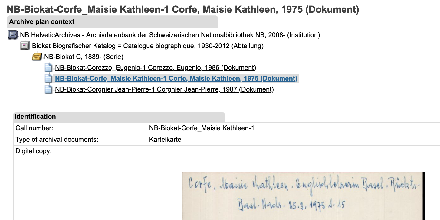 At the time of her retirement in about 1975 she was an English teacher in a college in Basel.