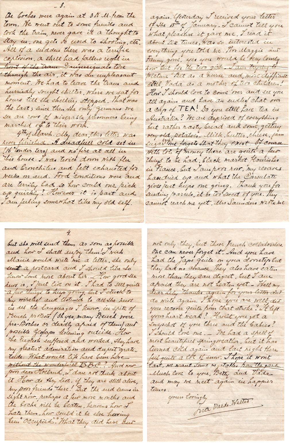 The letter which Ina wrote to my grandmother Lily from Avenue d’Eylius (d’Elysee?) was dated 27 Dec 1944 and was written in Grenoble, France It starts with: