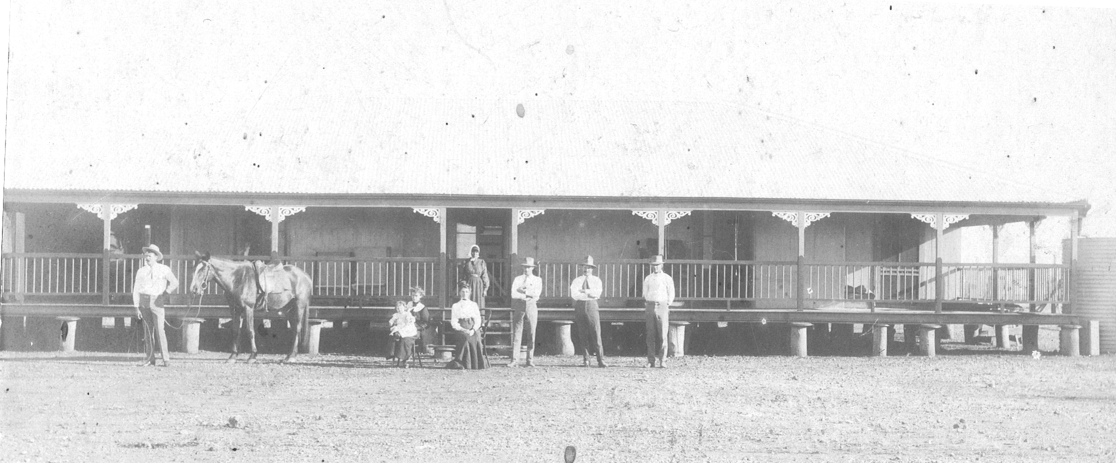 Lily married Dick d’Archy in Toowoomba, Southern Queensland, Australia on 29 December 1908 in the grounds of Girton College, the girls’ school which Lily’s elder sister Fanny had founded. Lily’s mother Margaret (Morgan) Hunt and another sister Margaret Ann (Maggie) were also living at the school. At that time Dick d’Archy was the manager of ‘Chatsworth’ and later ‘Headingly’, both remote cattle stations in North-West Queensland. Their first child Nancy Elizabeth (known as Betty) was born in Toowoomba in 1910; presumably Lily wanted to be nearer to her mother Margaret (Morgan) Hunt who had had ten children. Their second, Lilian Vada (known as Vada) was born in 1913 in Cloncurry or on ‘Headingly’ in the district during the northern Queensland ‘Wet’ season when travel was virtually impossible. So Lily’s children were a little older than Maisie.