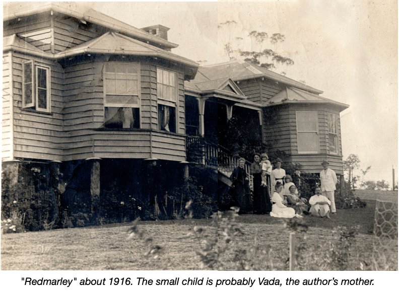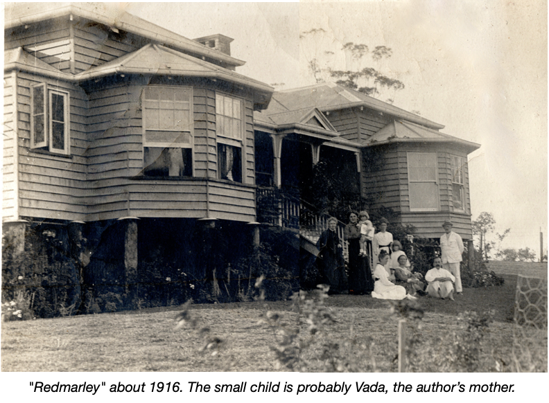 Dick d’Archy enlisted soon after World War I was declared, and his little family went back to the family home ‘Redmarley’ in Mackenzie St. Toowoomba. Lily’s sister Maggie, who had previously worked at Fanny’s school, married George Washington Griffiths in 1911 and it is possible that ownership of ‘Redmarley’ passed to the Griffiths, who were also living there at the time, although most of their (relatively short) married life was spent travelling the world. Also at ‘Redmarley’ at the time were Lily’s mother Margaret (Morgan) Hunt and Lily’s sister Fanny. The large old house was called ‘Redmarley’ after the Hunt family’s ancestral village in Worcestershire.